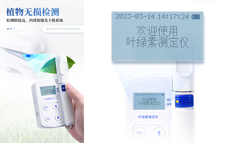 氮素含量一般情况下直接反应作物的健康情况,生长状态、了解植物真实的硝基需求量和土壤硝基的缺乏程度或是否过多地施加了氮肥,广泛应用于氮肥管理,除草剂应用,叶片衰老,环境胁迫等研究,叶绿素测量仪在农业种植过程中有很大的意义。 叶 绿素含量的测定结果是SPAD值,是叶片在两种波长650nm 和940nm,叶片传输光的数量进行比值计算,来确定叶片当前叶绿素的相对数量(两种波长范围内的透光系数来确定叶片当前叶绿素的相对数量 ),SPAD值与叶绿素之间成正比关系,因此SPAD值往往间接地可代表叶绿素值,从而可以评估植物健康状况、生长状态,因而在农业中,时常使用叶绿素计 来进行对植物叶绿素含量进行检测,以此来进行指导氮肥的施用量,因而在农业种植过程中使用叶绿素计来进行指导氮元素含量的施肥,同时在很多植物中,以此来 进行判断植物的抗逆性。 叶温常用来表示植物的体温状况,植物叶片中所有的化学反应,都受叶片温度的影响,在植物生理活动的分析中经常用到。叶温与 气温的差值,可以表明植物的缺水情况或受旱程度。因为当水分供应充足时,植物蒸腾正常,蒸腾耗热可以降低植物体温,这时叶温比气温低;反之受旱时,植物体 温上升,可高于当时的气温。