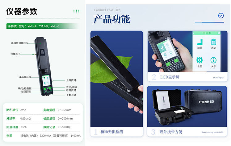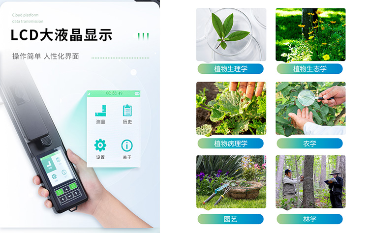 智能拍照式叶面积测量系统由图像采集仪和装入自主开发软件的平板组成,采用本公司多年积累的面积测量算法,根据叶片轮廓特征提取、图形实物转换、边缘检测等技术,能够形象并快速得到所测叶片面积、周长、虫洞数量等参数。相比传统的叶面积,具有测量更快速简便、结果更形象客观、数据多样并大大减少了人为操作带来的误差。