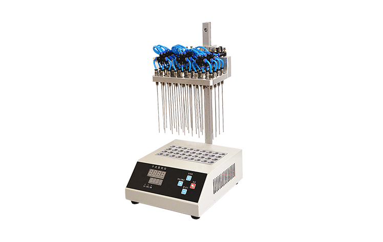 干式氮吹仪是氮气浓缩装置、氮气吹扫仪的简称,主要用于大批量样品在无氧下的浓缩或制备。广泛应用于农残分析、商检、食品、环境、制药、生物制品等行业, 氮吹仪是通过微电脑控制技术,加热是通过高纯铝材料做为加热介质,加热速度快,达到控温更加准确,控温范围广,可以同时处理36组样品.