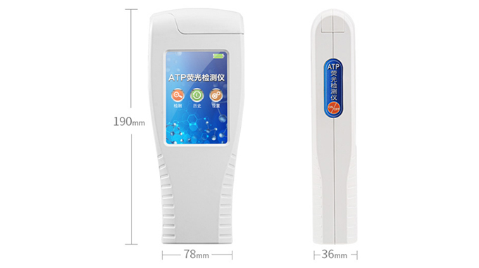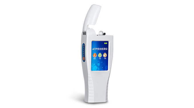 该设备为全新升级产品,大屏幕触摸显示屏,代替传统按键。操作采用生物化学反应方法检测ATP含量,ATP荧光检测仪基于萤火虫发光原理,利用“荧光素酶—荧光素体系”快速检测三磷酸腺苷(ATP)。ATP拭子含有可以裂解细胞膜的试剂,能将细胞内ATP释放出来,与试剂中含有的特异性酶发生反应,产生光,再用荧光照度计检测发光值,微生物的数量与发光值成正比,由于所有生物活细胞中含有恒量的ATP,所以ATP含量可以清晰地表明样品中微生物与其他生物残余的多少,用于判断卫生状况。