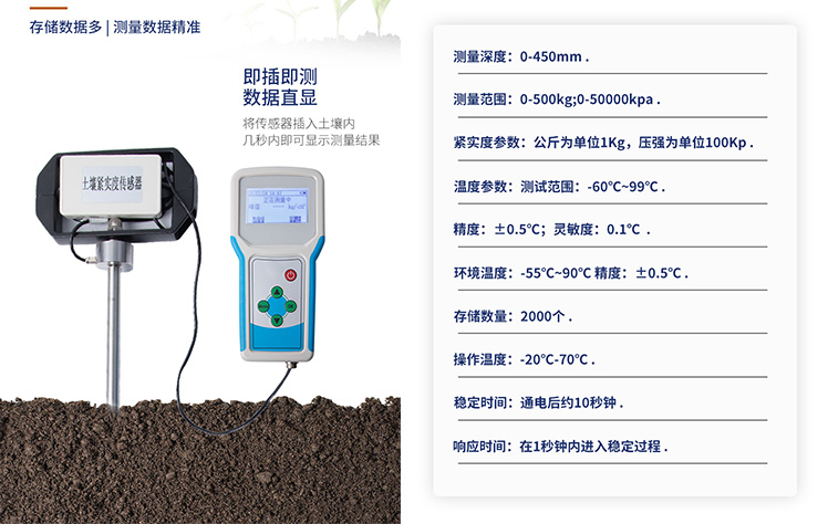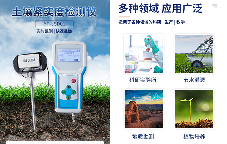 土壤紧实度由土壤抗剪力、压缩力和摩擦力等构成。是土壤强度的一个合成指标。金属柱塞或探针压入土壤时分动载和静载两种方法,不同方法的测定值不同,但有联系。柱塞的形状有锥体、平头、圆球及楔子等,这些对测定值也有影响。对同一种方法的测定值,主要决定于土壤质地、容重和含水量。其中含水量的影响**。土壤紧实度可预测土壤承载量、耕性和根系伸展的阻力。土壤紧实度的大小可影响作物根系的穿孔和生长,是一个重要的土壤物理特性指标,用于评价土壤耕性。紧实的土壤可阻止水分的入渗,降低化肥的利用率,影响植物根系生长,导致作物减产。