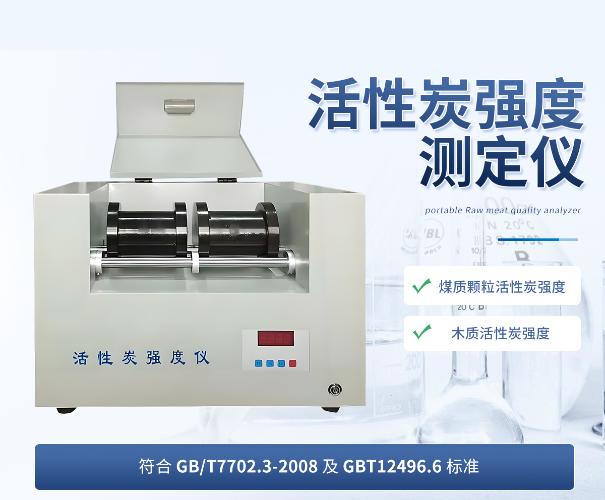 活性炭强度测定仪是按照GB/T7702.3-2008《煤质颗粒活性炭试验方法 强度的测定》和GBT12496.6《木质性炭试验方法 强度的测定》开发设计,适用于煤质颗粒活性炭强度的测定和木质活性炭强度的测定。