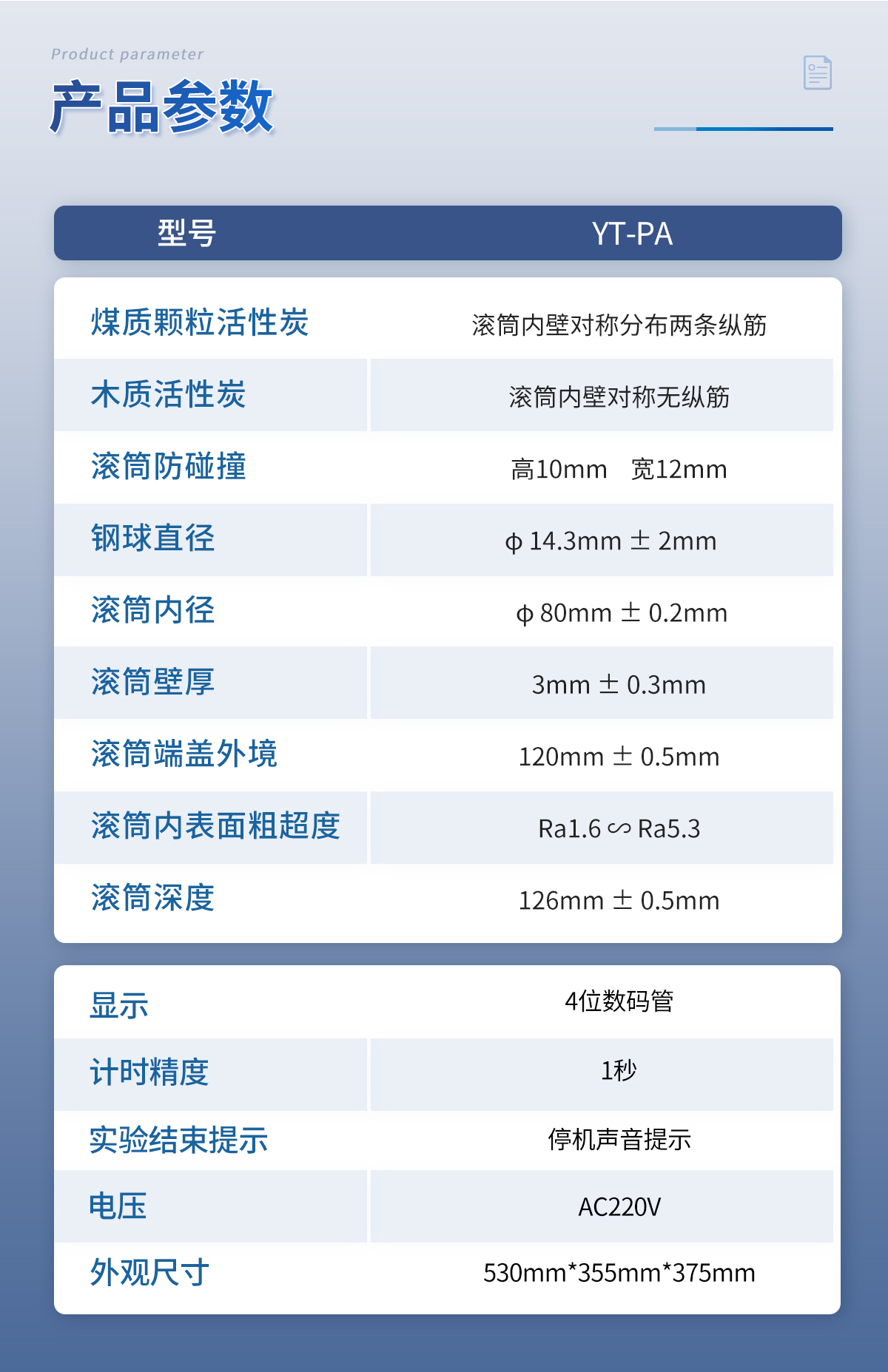 密封式活性炭强度测定仪技术参数: