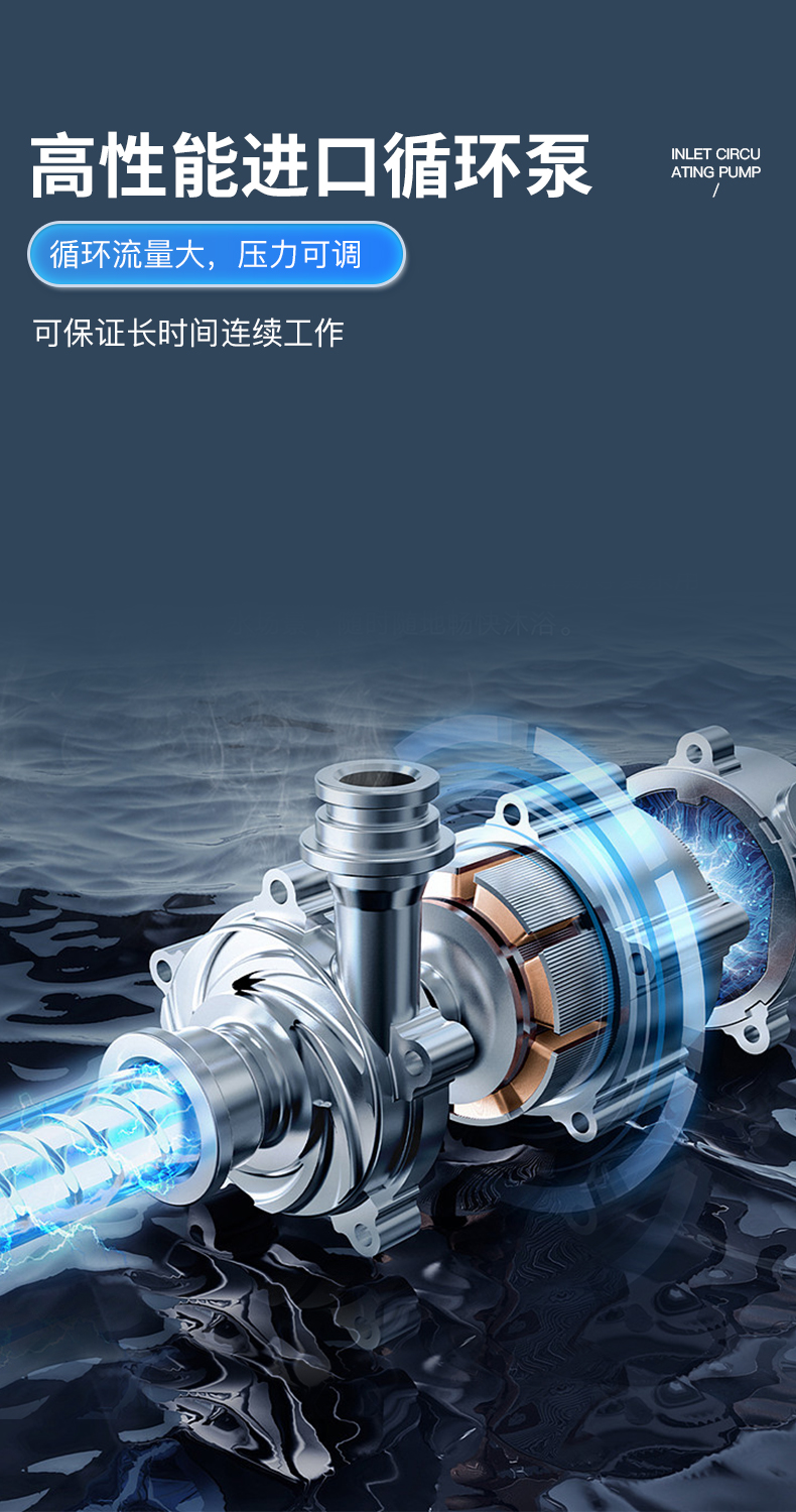 | 电压:220V AC | 频率:50HZ | 工作电流:3.2-8.6A | 压缩机功率:1050W/1.2HP | 制冷量:3KW±5% | 冷媒充注量:R410a/480g | 节流器:毛细管 | **扬程:15m | **流量:12L/min | 水泵功率:55瓦 | 出水口:φ10铜咀宝塔(默认) | 水箱容量:9L | 尺寸:长*宽*高740*480*840mm | 净重:65Kg | 保护:水流保护、水温超高报警、水温超低报警、压缩机过载保护、室温超高报警 |