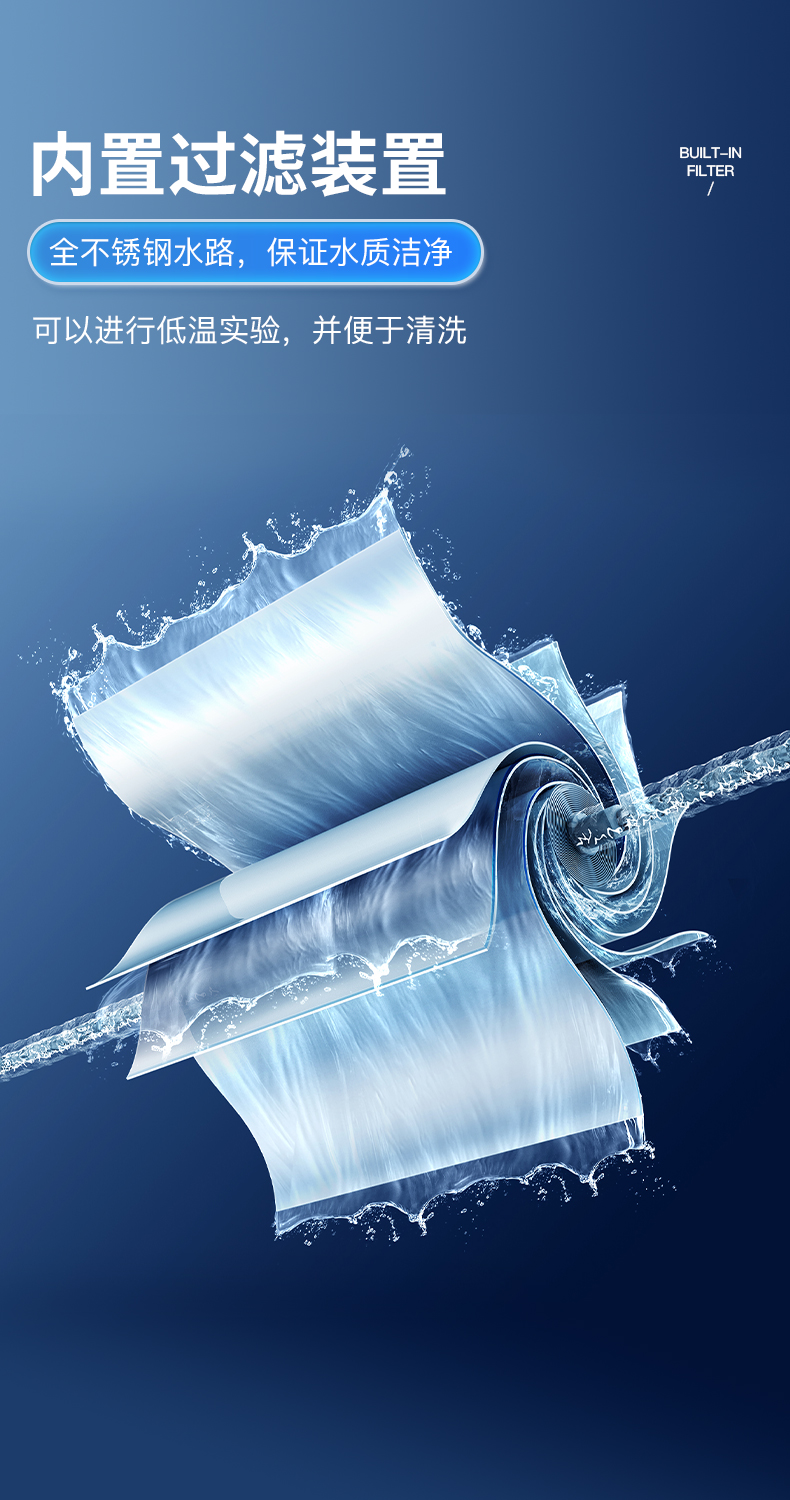 | 1.制冷量达3000w; | 2.体积紧凑,长寿耐用,操作便捷; | 3.温控精度可达士0.3℃; | 4.激光冷水机智能温控器具有两种温控模式,适用于不同的使用场合;有多种设定和故障显示功能; | 5.具有多种报警保护功能:压缩机延时保护、压缩机过流保护、水流保护、温度超限报警; | 6.可选配10-48m各种扬程水泵,供水量供水压力有保障; | 7.可选配加热器和净化水质配置; | 8.可选多国电源规格,CE\RoHS、REACH认证。 |