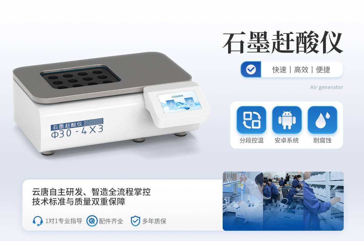 石墨赶酸仪,具有快速、**、便捷等优点,适用于食品、药品、质检、环保、疾控、化工、高校等行业样品的处理。可用于微波消解的预处理和赶酸处理,是原子吸收、原子荧光、ICP-AES等分析仪器的理想配套产品,更适合与微波消解仪配套使用。